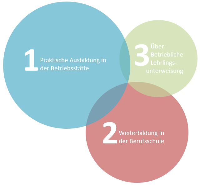 Deine 3½-jährige Ausbildung erfolgt im dualen System. Das bedeutet, dass du neben der praktischen Ausbildung im Betrieb auch die Berufsschule besuchst.